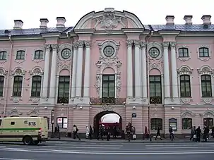 На фасаде Строгановского дворца бельэтаж выделен более крупными и богаче декорированными окнами