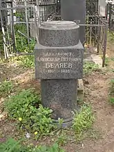 Последние годы жизни, после амнистии 26.8.1856 года, провёл в Москве, потерял зрение. Похоронен на Ваганьковском кладбище (4 уч.)[3]. К концу 1940-х годов могила была утеряна; точное место было установлено усилиями В. В. Сорокина и Л. А. Ястржембского по фотографиям краеведа А. Т. Лебедева (1868—1943). На памятнике стоит неверная дата смерти: 1885-й год[4].
