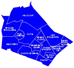 Восточная границей дзельницы проходит по Висле. Северная граница совпадает с северной границей Варшавы.