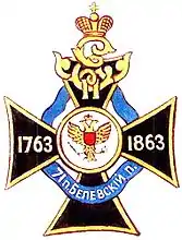 - полковое знамя простое, с надписью: «1763—1863», с Александровской юбилейной лентой;
