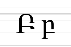 Использовалась в курдском алфавите на основе армянского письма (1921—1928) для обозначения звука [p][4].