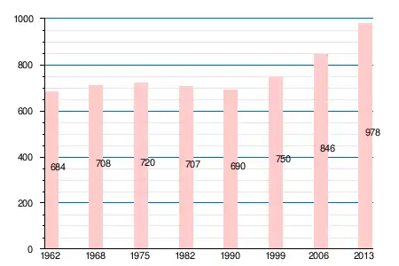 | 684 | 708 | 720 | 707 | 690 | 750 | 846 | 874 | 940 | 959 | 978 |