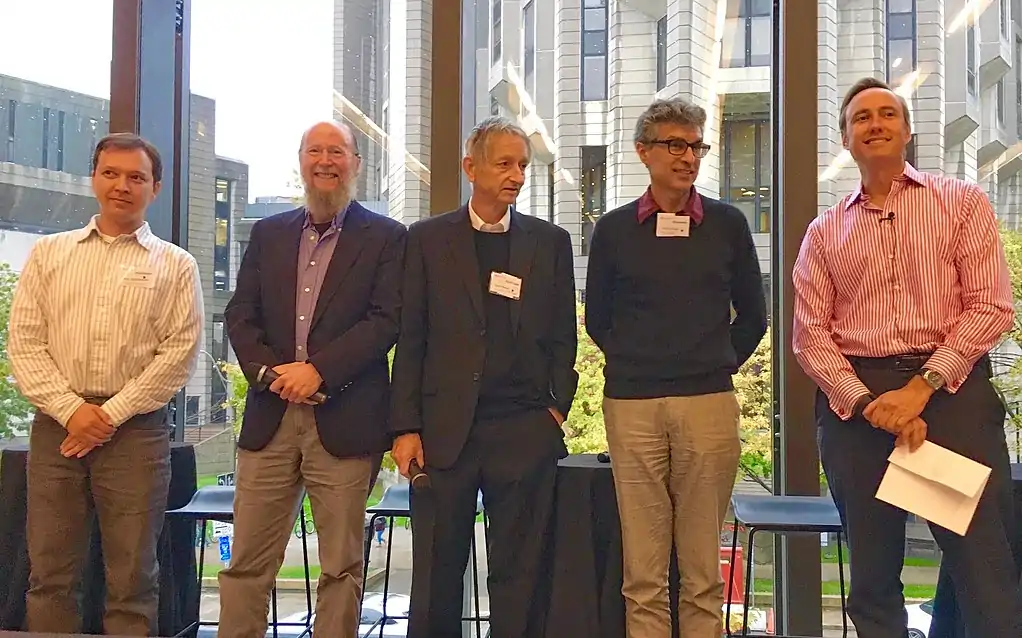 Слева направо: Русс Салахутдинов, Ричард Саттон, Джеффри Хинтон, Йошуа Бенжио и Стив Джурветсон в 2016 году
