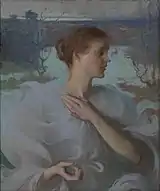 Фрэнк Бенсон (англ. Frank Weston Benson; 1862—1951) — американский художник-импрессионист[6] и педагог. Был одним из Десяти американских художников, а также членом Американской академии искусств и литературы и The Guild of Boston Artists. Широко известен своими картинами, акварелями и офортами. Самая высокая стоимость его картины, проданной на аукционе Sotheby’s в 1995 году, составила 4,1 млн долларов[7].