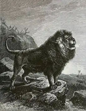 Берберийский лев в исторические времена встречался на всей территории африканского континента, расположенной к северу от Сахары. Древние римляне часто использовали его на аренах в увеселительных боях против туранского тигра, который сегодня также является вымершим. Из источников следует, что барбарийский лев приблизительно в начале XVIII века почти исчез в Северной Африке и оставался лишь в маленьком ареале на северо-западе. Распространение огнестрельного оружия и целенаправленная политика истребления были причинами того, что популяция сильно сократилась и в этом регионе. Последний живший на свободе барбарийский лев был застрелен в марокканской части Атласских гор в 1922 году. Похожая участь постигла и других крупных хищников Северной Африки. Берберийский леопард стал крайне редким, а атласский медведь полностью вымер.
