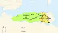 Берберские королевства в Нумидии, ок. 220 г. до н. э. (зелёное: масесили под управлением Сифаксом; желтое: массилии под управлением Гала, отец Масиниссы; дальше на восток: город-государство Карфаген).