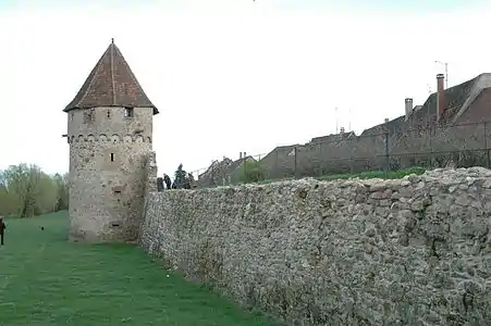 - Крепостная стена (XIV—XV века) с башней-воротами (Верхние Ворота), построенными в XIV веке и перестроенными в XVI веке. Верхние Ворота являются памятником культурного наследия с 8 марта 1948 года[12]