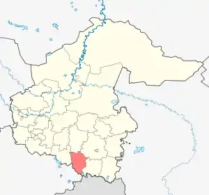 Район расположен в юго-восточной части Тюменской области и на юге граничит с Республикой Казахстан. Площадь территории района составляет 2,8 тыс. км².