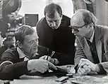 Съёмки х/ф "4:0 в пользу Танечки". Слева на право: Радомир Василевский, Виктор Березовский, Андрей Мягков.