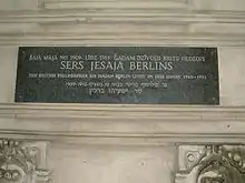 В Риге, на фронтоне дома 2а на ул. Альберта, в котором родился Берлин, установлена мемориальная доска в его честь.