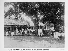 ![]() Король Малиетоа на чтении Берлинского договора 1889 года | |