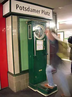 Одной из особенностей берлинского метрополитена являются чугунные весы, расположенные на некоторых станциях. Они были изготовлены в количестве 55 штук в 20—30 годах XX века машиностроительной фабрикой Зилафф по заказу берлинского метрополитена. Стоимость взвешивания составляет 10 евроцентов, результат распечатывается на маленькой бумажке. На самих весах приведена таблица рекомендованного соотношения рост-вес. По состоянию на август 2002 все весы находились в собственности жителя Берлина Петера Шульца, который стал выкупать их начиная с 1987 года[3].