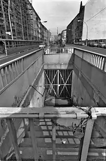 Ранним утром 13 августа 1961 года Берлинский метрополитен (Berliner U-bahn) начал свою привычную работу, однако в местах условных границ Восточного и Западного Берлина (участки линий, проходивших под Восточным Берлином или ведущих из Западного в Восточный), поезда были остановлены. То же самое произошло и с городской электричкой (S-bahn). После разделения города стеной большая часть городской подземки осталась в Западном секторе. В Восточном же остались только линии U2 и U5, переименованные в линии «A» и «Е» соответственно. Линия малого профиля U2 была разделена практически пополам. Со стороны Восточной части города конечной станцией этой линии стала Thälmannplatz (сегодня называется Mohrenstraße), следующая станция Potsdamer Platz была закрыта и контролировалась пограничниками ГДР, поскольку примыкала к охраняемой пограничной зоне. В Западном секторе линия начиналась от станции Mendelssohn-Bartholdy-Park и заканчивалась станцией Ruhleben. Постепенно по экономическим причинам (малый пассажирский поток) некоторые станции линии U2 в Западном Берлине были закрыты или перепрофилированы. По отдельному отрезку линии был пущен ретро-трамвай. Лишь в феврале 1991 года работа линии была восстановлена. Линия большого профиля U5 целиком оставалась в Восточном секторе города. Она начиналась от пересадочного узла (станции Alexanderplatz) и заканчивалась станцией Friedrichsfelde.