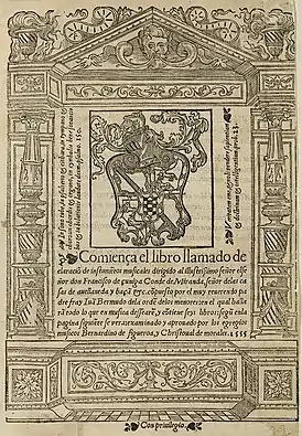 ![]() Титульная страница трактата Бермудо "Разъяснение музыкальных инструментов" (1555) | |