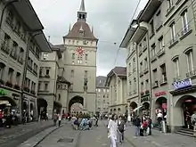 - Цитглогге с воротами. В прошлом часовая башня была частью городских укреплений, ворота в башне были одними из нескольких городских ворот. На восточном фасаде башни расположены астрономические часы, установленные в 1530 году. Механизм часов приводит в движение фигуры петуха, медведей, Хроноса, каждый час они разыгрывают представление. Оно начинается за четыре минуты до наступления нового часа. Также часы показывают движение звёзд и знаки зодиака. Прежде они были главными часами города и эталоном времени, все остальные часы сверялись по ним.