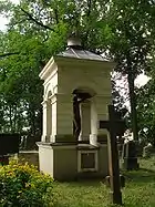 Декорированные скромными пилястрами, увенчанные тимпаном с тремя коваными крестами ворота кладбища в классицистском стиле воздвигнуты в 1820 году. На них имеется надпись «Non omnis moriar» («Весь я не умру»).