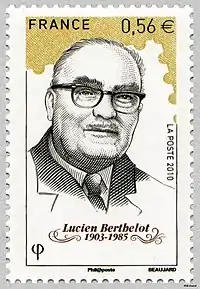 ![]() Почтовая марка Франции с портретом Люсьена Бертело (2010) | |