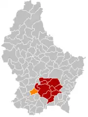 Оранжевый цвет — коммуна Бертранж, красный — кантон Люксембург.