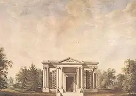 - Берёзовый домик (Петергоф) — построен в 1781 г., архитектор Д. Кваренги. Павильон сгорел в 1941 г.