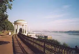 Ротонда на набережной в Волгограде в 50-60 г. XX века. - Павильон представляет собой вообще любую садовую постройку развлекательного характера. В ряде конкретных частных случаев слова «павильон» и «беседка» могут использоваться как синонимы[4], или «беседка» может быть частным случаем «павильона»[5], или отдельным от «павильона» понятием[6].