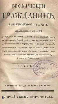 В декабрьском номере «Беседующего гражданина» была опубликована неожиданно острая статья под названием «Беседа о том, что есть сын Отечества», начинавшаяся словами: «Не все рождённые в Отечестве достойны величественного наименования сына Отечества (патриота). Под игом рабства находящиеся недостойны украшаться сим именем».