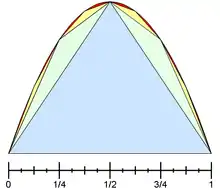 Первое свидетельство применения бесконечного ряда обнаруживается у Архимеда в «Квадратуре параболы», где для доказательства утверждения о соотношении 4:3 площадей сегмента, заключённого между прямой и параболой, и треугольника, имеющего с ним то же основание и равную высоту, он суммирует бесконечный ряд: