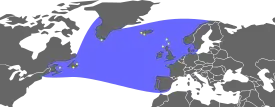 Бескрылая гагарка была также обычна на Большой Ньюфаундлендской банке[36]. Останки бескрылых гагарок были найдены в Новой Англии и на юге Испании. Кости бескрылых гагарок находили даже далеко на юге, во Флориде, где эти птицы могли присутствовать в течение четырёх периодов: около 1000 года до н. э., 1000 года н. э., в XV и XVII веках[42][43]. Однако, возможно, обнаруженные во Флориде кости могли оказаться там в результате торговли между коренными жителями Америки[40]. Обнаруженные окаменелости бескрылой гагарки свидетельствуют, что в плейстоцене она обитала также и в Средиземном море, в частности на побережьях южной Франции и Италии[44][13].