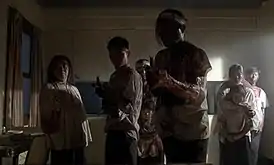![]() Галлюцинация, внушённая Проповедником Генри Уиллигу: жертвы вьетнамской войны, расстреливающие его в собственной квартире. | |||||