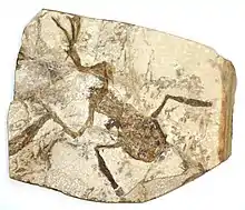 Prosalirus bitis — одно из древнейших животных, обладавшее многими признаками бесхвостых. Этот вид был открыт в 1995 году в Аризоне, когда его окаменелые останки были обнаружены в нижнеюрских отложениях формации Кайента (англ. Kayenta Formation) возрастом более 180 миллионов лет[20]. Prosalirus ещё не обладал мощными задними конечностями, но его посадка (структура таза) напоминает современных лягушек, он не имел хвоста[21][22] и был адаптирован к передвижению прыжками[23]. Другая раннеюрская лягушка описана под названием Vieraella herbsti. Этот вид известен лишь по единичной находке, представляющей собой оттиск брюшной и спинной стороны одного животного. Её размер предположительно составлял 33 мм.
