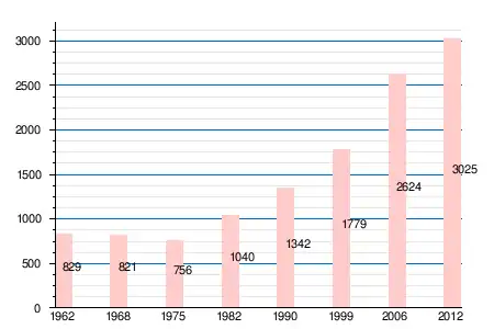 | 1962 | 1968 | 1975 | 1982 | 1990 | 1999 | 2006 | 2011 | 2012 |