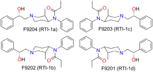 - Yong, Z.; Hao, W.; Weifang, Y.; Qiyuan, D.; Xinjian, C.; Wenqiao, J.; Youcheng, Z. (2003). "Synthesis and analgesic activity of stereoisomers of cis-fluoro-ohmefentanyl". Die Pharmazie 58 (5): 300–302. PMID 12779044
