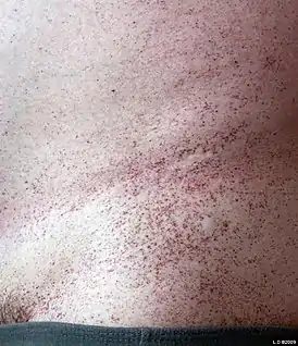 ![]() Ангиокератома туловища — клинический признак, ассоциированный с β-маннозидозом[1] | |