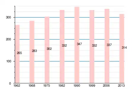 Население коммуны в 2011 году составляло 328 человек[6], в 2012 году — 321 человек[7], а в 2013-м — 314 человек[5].