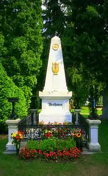 Людвиг ван Бетховен умер 26 марта 1827 года, на 57-м году жизни. Свыше двадцати тысяч человек шли за его гробом. Во время похорон на Верингском кладбище была исполнена любимая заупокойная месса Бетховена Реквием до-минор Луиджи Керубини. На могиле прозвучала речь, написанная поэтом Францем Грильпарцером[11]: