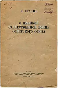 - Сталин И. В. О Великой Отечественной войне Советского Союза. — М.: Государственное издательство политической литературы, ОГИЗ, 1947 г.