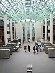 Здание сдано в эксплуатацию 15 декабря 1999 года. Библиотека состоит из главного корпуса высотой 4 этажа и низкого фронтонного корпуса, соединённых пассажем со стеклянной крышей. На крыше главного корпуса устроен ботанический сад площадью в 1,5 га.