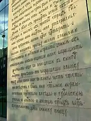 На западном фасаде находятся восемь плит с символическими надписями: