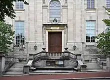 Здание библиотеки было построено по проекту бостонской архитектурной фирмы Shepley, Rutan and Coolidge из белого мрамора из штата Вермонта в стиле английского ренессанса.