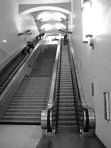 К западу от станции располагается перекрёстный съезд, использовавшийся в 1998—2007 годах. Также часть нынешнего перегона до станции Олимпиад использовалась в качестве ателье для поездов, перенесённого на запад с открытием станции метро Олимпиад.