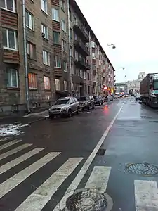 ![]() Библиотечный переулок со стороны улицы Шкапина, впереди виден Балтийский вокзал | |