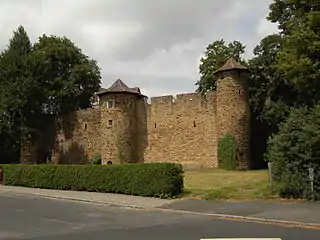 От крепости, стоявшей на месте замка в XVI веке, сохранились фрагменты внешней стены и угловые башни.