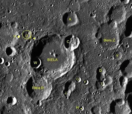 - Образование сателлитного кратера Биела B относится к нектарскому периоду[1].