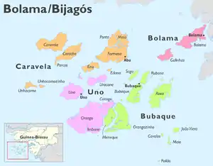 Архипелаг Бижагош, который входит в округ Болама делится на 4 сектора: