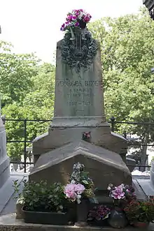 3 июня 1875 года Жорж Бизе умер после повторного сердечного приступа на 37-м году жизни. Другая версия причины смерти композитора, озвученная другом композитора Антони де Шуданом, — самоубийство, так как Шудан якобы видел на шее Бизе след от резаной раны[18]. После временного погребения на кладбище Монмартр прах Бизе был перенесён на кладбище Пер-Лашез.