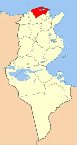 На юго-западе граничит с вилайетом Беджа, на юге с вилайетом Мануба, на юго-востоке с вилайетом Арьяна. На севере омывается водами Средиземного моря.