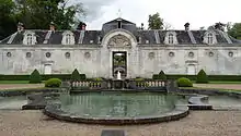 Оба крыла, закрывающие парадный двор, были построены в начале XX века. Угловые павильоны построены в XIX веке; их мансардная кровля покрыта шифером. Здание конюшен декорировано люкарнами.