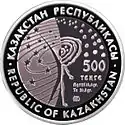 | Аверс: стилизованная композиция звёздного неба и двух человеческих фигур, название государства, номинал, знак монетного двора, год выпуска, масса и проба металлов. Реверс: Земля с обозначенной на ней территорией Казахстана, окружённая орбитами спутников в виде шанырака, название космодрома на каз. БАЙҚОҢЫР, рус. БАЙКОНУР и англ. BAIKONUR, звёздочки. Гурт гладкий. Материал: серебро-925 (кольцо, 14,6 г), тантал (центр, 26,8 г). Диаметр: 38,61 мм. Тираж: 5000 шт.[10] |