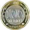 Биметаллические монеты номиналом 100 тенге чеканятся из нейзильбера (центральная часть) и нибрасса (кольцо).