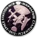 | Реверс: станция «Мир» на фоне Земли, Луны и звёзд, эмблема станции и её название на каз. «МИР» ҒАРЫШ СТАНЦИЯСЫ и англ. SPACE STATION «MIR», год выпуска. Материал: серебро-925 (кольцо, 14,6 г), тантал (центр, 26,8 г). Диаметр: 38,61 мм. Тираж: 5000 шт. | ||