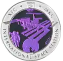 | Реверс: МКС и космонавт на фоне Луны, эмблема станции и её название на каз. ХҒС, рус. МКС и англ. INTERNATIONAL SPACE STATION, год выпуска. Материал: серебро-925 (кольцо, 14,6 г), окисленный тантал лилового цвета (центр, 26,8 г) . Диаметр: 38,61 мм. Тираж: 5000 шт. | ||